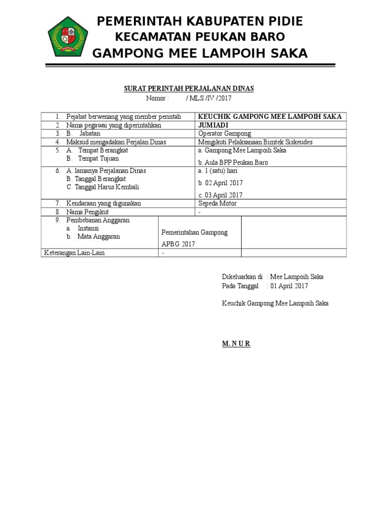 Contoh surat perjalanan dinas spt kepala desa terbaru doc. Contoh aplikasi sppd (surat perintah perjalanan dinas) sederhana ini sangat memudahkan kita dalam membuat sppd, sehingga kita tidak perlu repot dan kesulitan ketika membuat sppd, untuk itu cara membuat aplikasi sppd sederhana surat perintah perjalanan dinas ini sangat cocok digunakan di semua instansi, seperti keperluan surat menyurat sppd di desa, sekolah, madrasah, skpd dinas, pemerintah. Download surat tugas perjalanan dinas doc (model 1) surat tugas bimtek. Nah dibalik itu semua pemerintah melakukan pengecualian perjalanan atau diperbolehkan perjalanan terhadap 3 jenis, diantaranya mengurus atau menjemput orang sakit, hamil dan perjalanan dinas. Contoh surat dinas desa have a graphic associated with the other.contoh surat dinas desa it also will feature a picture of a kind that might be observed in the gallery of contoh surat dinas desa.