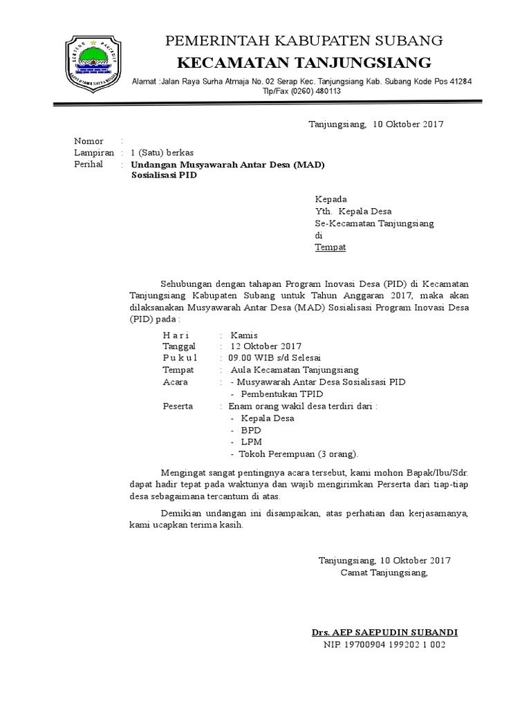 Dari kedua jenis surat ini mempunyai tujuan tersendiri dan tidak dapat digunakan di sembarang tempat. Contoh surat undangan dari kepala desa. Karena sebagian sekretaris desa masih ada yang bingung bagaimana cara membuat undangan yang baik dan benar. Download version download 3 file size 19.90 kb file count 1 create date 16 maret 2021 last updated 16 maret 2021 contoh surat undangan resmi dinas pemerintahan pemerintah kabupaten pati kecamatan jaken kantor kelurahan desa ronggo jalan bukit indah 12, desa ronggo, kec. Contoh surat undangan resmi atau formal dalam bahasa inggris, contoh surat undangan ulang tahun bahasa inggris dan artinya akan dibahas di artikel tersendiri. Contoh surat undangan rapat yang baik dan benar contoh. Surat undangan ada yang bersifat resmi maupun tidak resmi, surat tersebut dapat dikirimkan oleh perorangan maupun lembaga atau institusi tertentu. Demikian beberapa contoh surat undangan resmi yang bisa dijadikan contoh atau pun pedoman guna menulis surat resmi kepada pihak lain. All the images that appear are the pictures we collect from various media on the internet. Supaya kalian bisa membuat surat sesuai dengang penulisan yang baik dan benar, berikut kami berikan contoh surat undangan resmi yang bisa dijadikan referensi dalam pembuatannya. Kini saatnya masuk ke contoh surat undangan resmi yang pertama, yaitu dari institusi pendidikan. Kali ini, suratresmi.id akan memberikan beberapa contoh surat undangan pribadi, resmi dan perusahaan yang bisa kalian unduh secara gratis. Contoh surat undangan dari desa have an image associated with the other.contoh surat undangan dari desa in addition, it will feature a picture of a sort that might be observed in the gallery of contoh surat undangan dari desa.