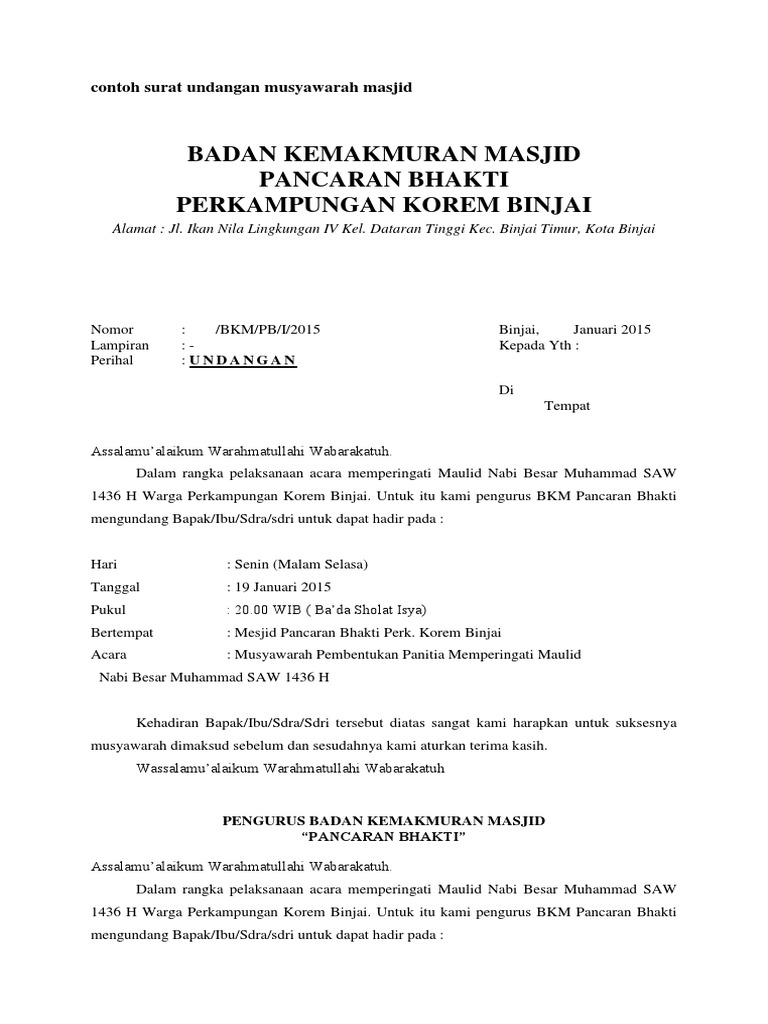 Contoh Surat Undangan Rapat Bkm Masjid - 25 Contoh Surat Undangan Rapat Paling Lengkap - Bapak/ibu peserta kumpulan korban sapi.. Badan kemakmuran masjid (bkm) baiturrahmah gampoeng keuramat kec. Apa yang dimaksud dengan surat undangan? Undangan isra miraj untuk jamaah masjid. Demikian surat pemberitahuan dan undangan ini kami sampaikan kepada seluruh jma'ah masjid wilayah sukosari. Sekretariat remaja masjid al hikmah.