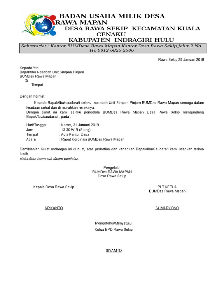 Format Dan Contoh Surat Undangan Rapat Resmi Yang Benar from caramenghitung.com Pemerintah kabupaten magetan kecamatan bantur desa. Tpq dan mda darus salam. Contoh surat undangan resmi dan tidak resmi. Surat undangan rapat bpd adalah surat undangan khusus untuk kegiatan rapat/sidang/forum musyawarah desa yang diadakan oleh badan apakah anda sedang mencari contoh format surat undangan rapat bpd desa terbaru dalam rangka membahas dan menyetujui draft rancangan. Contoh surat undangan rapat sekolah dengan orang tua. Kumpulan contoh surat undangan ulang tahun, rapat, reuni, dan kegiatan acara syukuran resmi/tidak. Dalam wilayah desa, biasanya membawahi beberapa rw ataupun rt. Contoh surat undangan dalam bahasa inggris untuk rapat perusahaan.